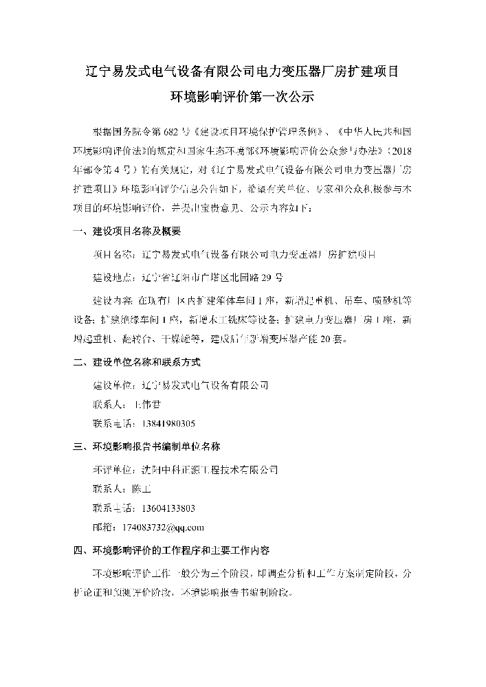 遼寧易發(fā)式電氣設(shè)備有限公司坐落于遼寧省遼陽市,是省級(jí)技術(shù)中心和高新技術(shù)企業(yè)。2022年被認(rèn)定為省級(jí)“專精特新”中小企業(yè)。公司成立于1994年10月,注冊(cè)資本10000萬元,總資產(chǎn)10.5億元,占地面積64000平方米,建筑面積33528平方米,其中廠房建筑面積30559平方米。公司專業(yè)經(jīng)營高壓、超高壓電力變壓器、配電變壓器、干式變壓器、箱式變壓器、移動(dòng)變電站、預(yù)裝式變電站和非工程建設(shè)類對(duì)外承包工程(EPC工程項(xiàng)目)等業(yè)務(wù)。公司擁有生產(chǎn)變壓器產(chǎn)品的各類通用和專用設(shè)備669臺(tái)套,其中411臺(tái)套從美國、英國、德國、意大利及葡萄牙等11個(gè)國家引進(jìn)的具有世界先進(jìn)水平的生產(chǎn)變壓器的專用設(shè)備......